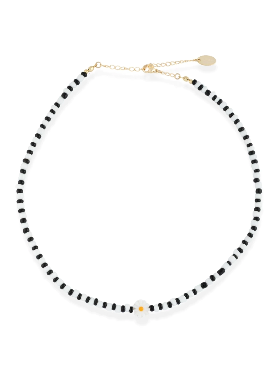 Collar hecho con canutillos y dije de margarita de nácar natural.