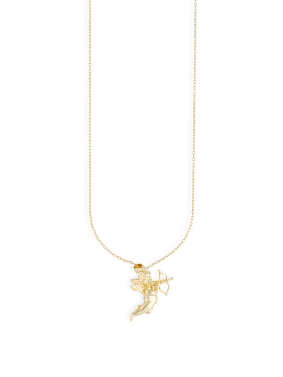 Collar hecho con cadena de eslabones finos y dije de angelito con arco y flecha.