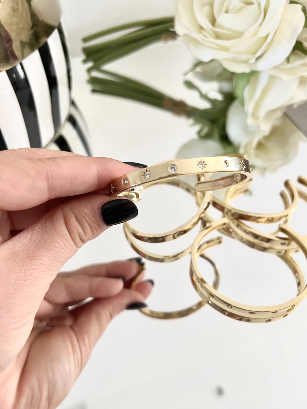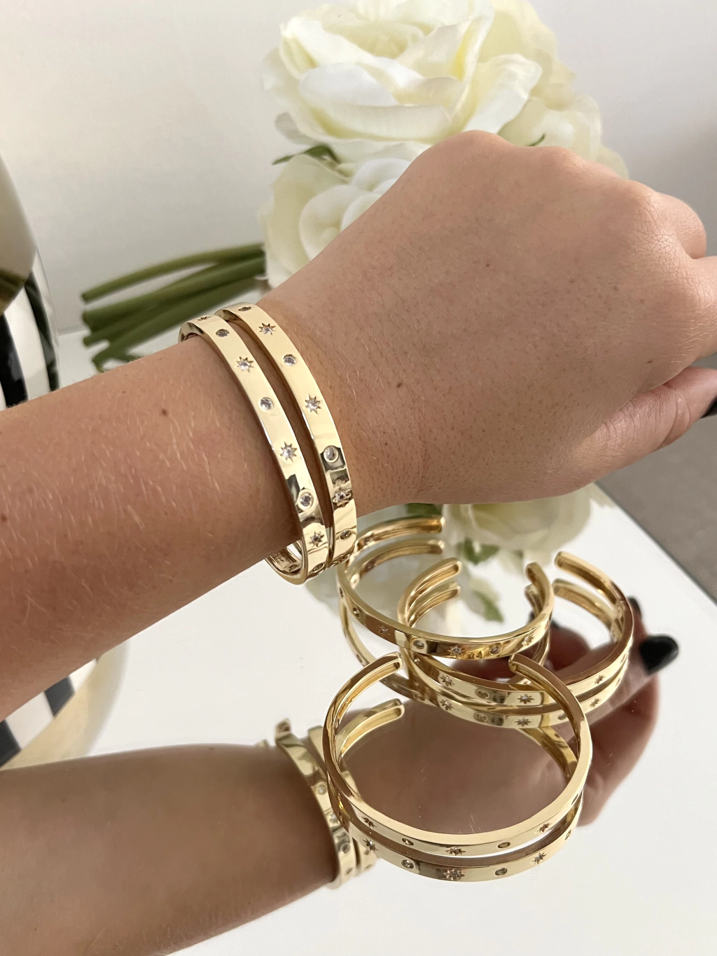 Pulsera rígida regulable con de microcircones brillantes.